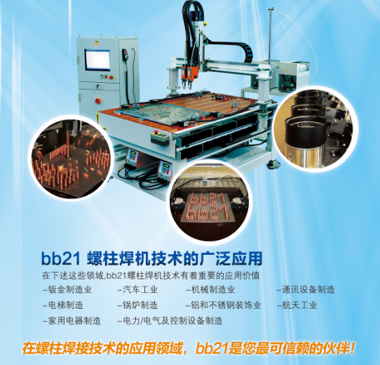 bb21螺柱焊機(jī)代表處,德國螺柱焊機(jī),bb21螺柱焊機(jī),進(jìn)口螺柱焊機(jī),螺柱焊槍,bb21螺柱焊槍,螺柱焊釘及螺柱焊接配件。德國bb21授權(quán)代表處-友君歐比歐(廈門)機(jī)械設(shè)備有限公司